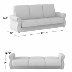 - A click-style hinge allows you to easily sit, recline or convert the sofa into a full-size sleeping surface
