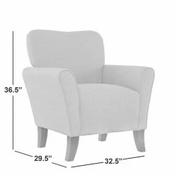 This Sasha chair boasts a transitional flared arm design that will compliment a variety of home styles. The chair features a squared back design with a clean tight seat and back. The seat cushion has thick foam and pocket coils over a sinuous spring seat deck making this chair extraordinarily comfortable and stylish as well. Engineered mixed hardwood frame construction for added strength. Takes less than 15 minutes to assemble. Imported, color may vary.