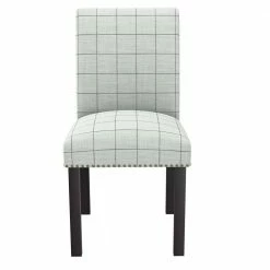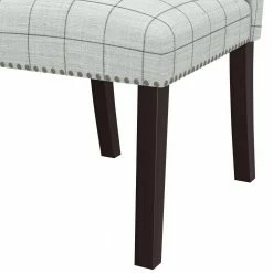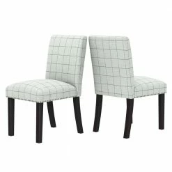 This set of 4-armless dining chairs features a fully upholstered seat and back with hand tacked pewter nail head trim for a simple and polished style. A comfortable and elegant addition to the dining table or simply anywhere you might need an extra seat. Takes less than 15-minutes to assemble each chair with included tool and instructions. Imported, color may vary.