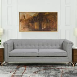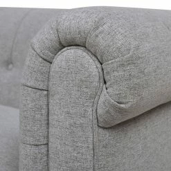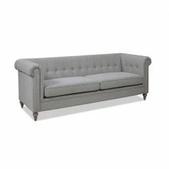 The Shiloh Seating Collection by Jennifer Taylor Home embodies the perfect combination of modern farmhouse chic with its classic Chesterfield silhouette made rustic with minimal embellishments and weathered-finished wood turn legs. The lightly square tufted back and arms add just enough detail while the rolled arms and back are plush and comfortable. The seat cushions are removable and reversible.