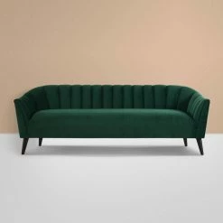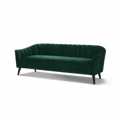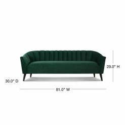 Don’t settle for boring and plain. The Sienna Collection by Sandy Wilson Home has redesigned the old fashioned mid-century sofa with a modern flair. Featuring vertical channel tufting, tall tapered solid wood legs finished in a rich dark mocha, and upholstered in soft luxurious velvet, you won’t help but feel excitement every time you sit down. This is definitely a sofa you will fall in love with. Look for the matching accent chair to create the perfect conversational set!Features:- Crafted from birch, which is a strong hardwood ideal for furniture making- Premium woven polyester fabric wrapped around high-density flame-retardant foam padding and cushion for a luxurious medium firm feel- Masterfully handmade by experienced furniture craftsmen and women- Legs: Solid wood in a Dark Mocha finish (Gold accent chair features Natural finish legs)..