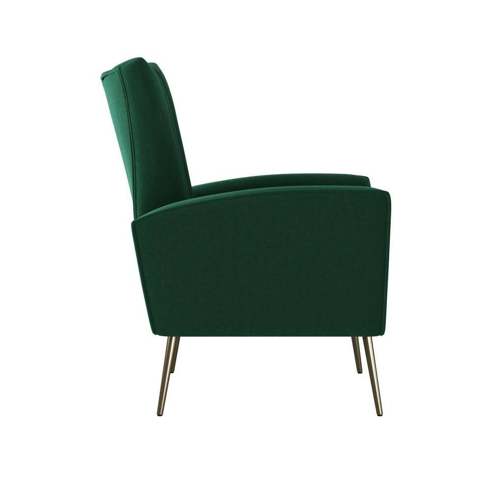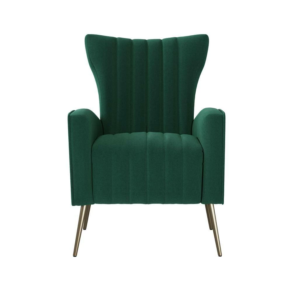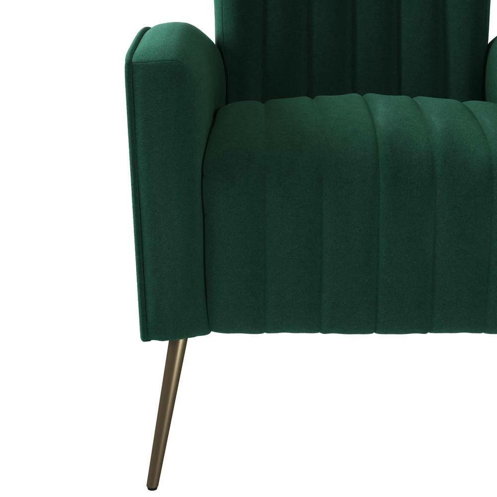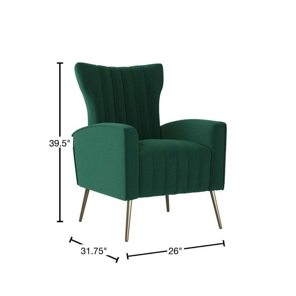 This channel-tufted armchair has a shapely silhouette that gives it a retro-inspired look. Upholstered in soft-to-the touch, 100% polyester velvet, the squared back has gently tapered sides, while square welted arms lend a tailored finish. Easily assembled in less than 20-minutes with included tool and instructions. Imported, color may vary.