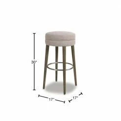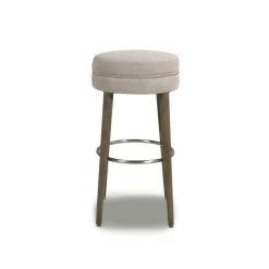 The Vesper Bar Stool Collection is the perfect companion piece to complete your modern dining set. Tastefully accented with an antique brass nailheads, a stainless-steel ring footrest, and 4 wooden legs cut from solid hardwood, the fully upholstered Vesper is a classy example of modern bar seating with its wide, round look. Available in both 30 bar and 26 counter seat heights, this elegant bar stool blends in seamlessly whether its with your kitchen counter or pub table.
