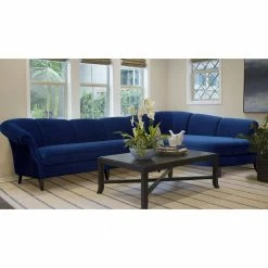 The Ramsey Collection sofa by Jennifer Taylor Home will add excitement to your decor with its unique and upscale design. This sofa will truly stand out in any setting with its button tufted sloped arms and camelback backrest, tapered mocha finished legs, and large double seat cushions. Completely built by hand, premium fabric is wrapped around a sturdy kiln-dried solid wood frame and high-quality high-density foam to assure long lasting support and comfort. Don’t settle for anything less than the ultra-premium look and quality of Jennifer Taylor Home bench-made furniture.