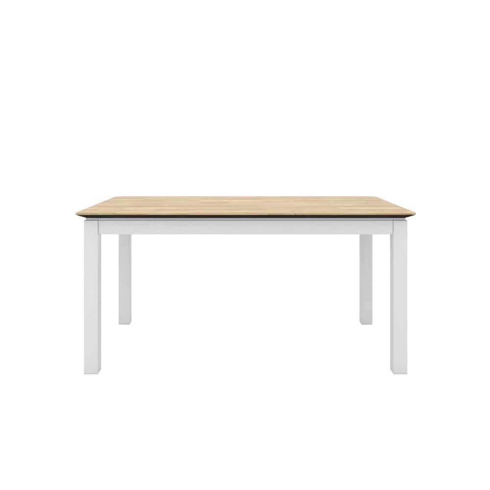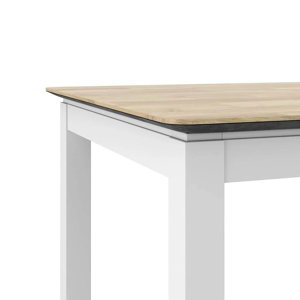This rectangular dining table boasts a versatile transitional style designed to complement any home. The table features a high performance top that is durable and is scratch resistant. The high pressure laminated table top sits on a wood frame with four square legs that provides the perfect amount of style and support. Imported, color and veneer design may vary.