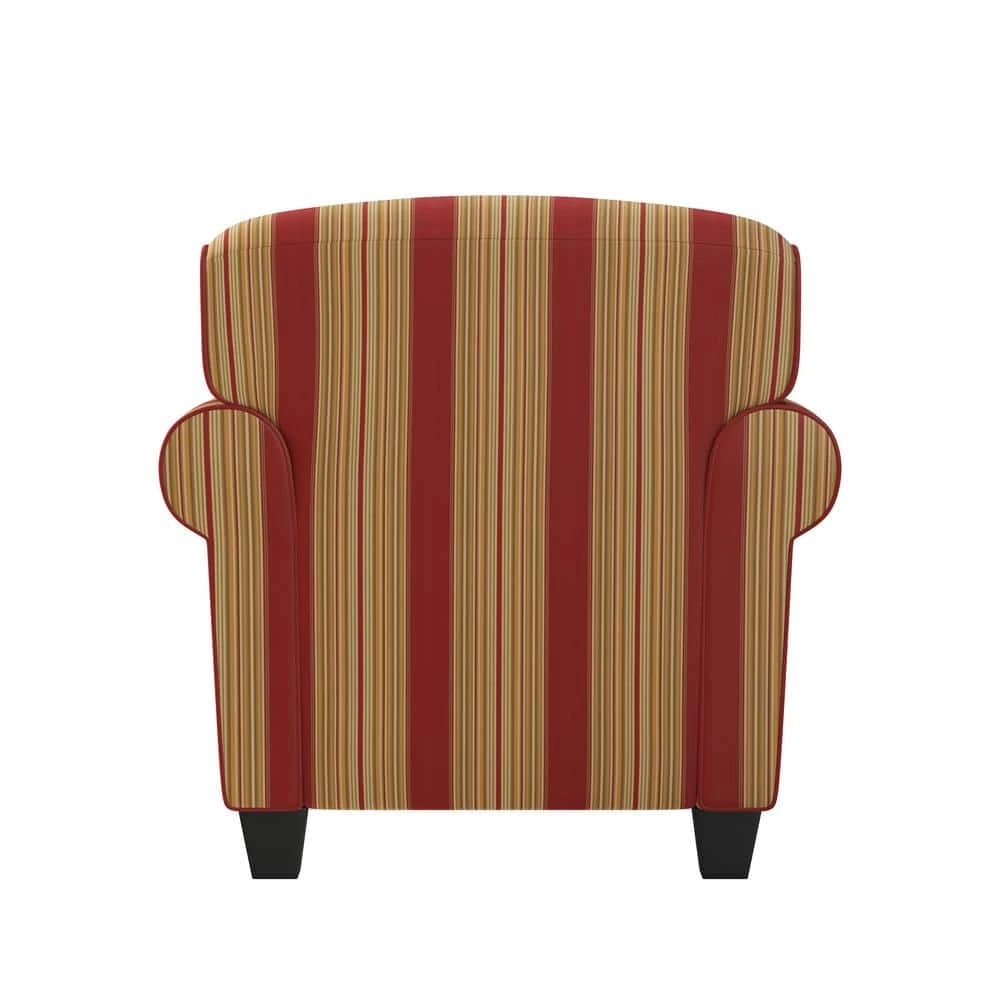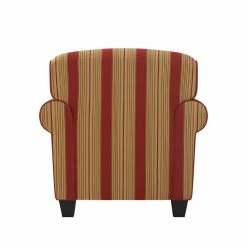 Update your home decor with the elegance and luxury of this rounded arm transitional chair and ottoman. Matching dark espresso finished tapered wood legs on the chair and ottoman. Chair boasts a high-end 8-way hand tied, polyester fiber and foam seat cushion with a sinuous coil back cushion for great comfort. Coordinating ottoman has a firm cushion which is perfect for a footrest or as an extra seat. Ideal for everyday living. Imported, color may vary.