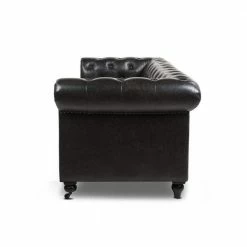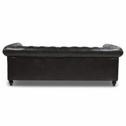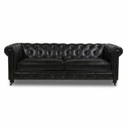 Stylishly impeccable, the Winston Chesterfield Sofa Collection provides the finest luxury seating for your home. Richly upholstered in velvet, this lush sofa evokes the classic Chesterfield design with hand-applied button tufting, smooth curled arms, a spacious seating for 3, dark espresso legs, and studded antique brass nailheads. The Winston possesses a sophisticated vintage chic that never goes out of style and is sure to remain a centerpiece in your living room, guestroom, or parlor for years to come. Two convenient casters are included on the front legs for ease of relocation. To bring the whole room together, the Winston is also available a single armchair variation. Due to the many variations in monitors and browsers, colors may appear different on different monitors. Since it is not possible to guarantee our online colors will look the same on all computers, we do not guarantee that what you see accurately portrays the color of the actual product. If it is important that the sample be exact, we highly recommended that you order a swatch sample first, before placing the order.