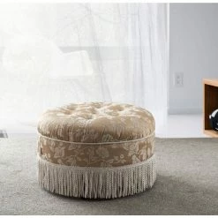 Relax on your elegant Jennifer Taylor Yolanda Ottoman. This ottoman is built with a footrest, ensuring total comfort by reducing pressure on your legs. Made of fabric, it is perfect for providing your home with a simple look that can easily go with other pieces of furniture. It features a classic style, creating an aesthetic that is comforting and inviting.