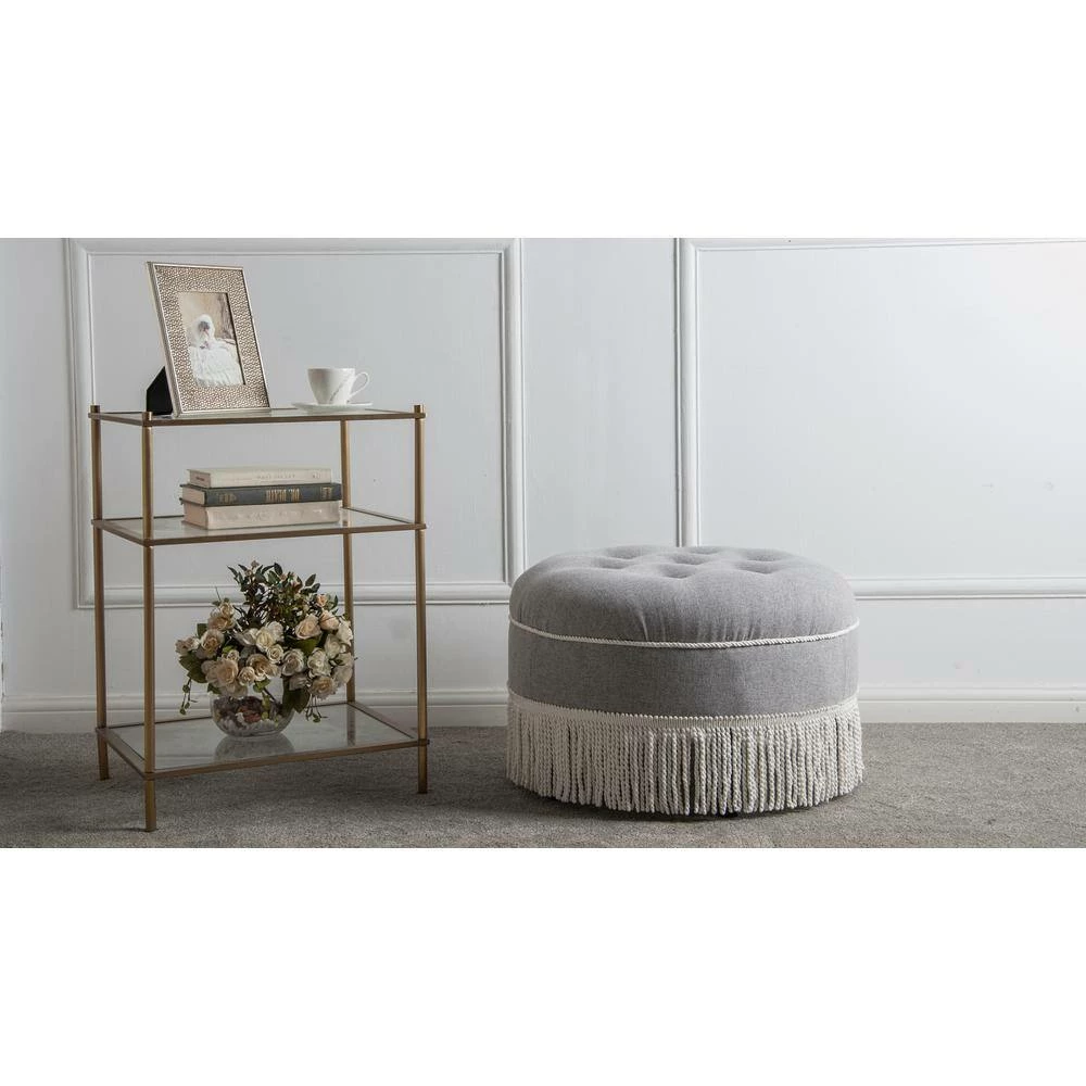 Sit back on your charming Jennifer Taylor Yolanda Ottoman. Featuring a classic style, this ottoman is perfect for creating an appearance that is warm and inviting. It has fabric materials and is covered with linen upholstery, preventing outside contaminants from getting into the fabric, making it an easy-to-maintain option. This ottoman has a footrest, which increases comfort when sitting for long periods of time while improving circulation.